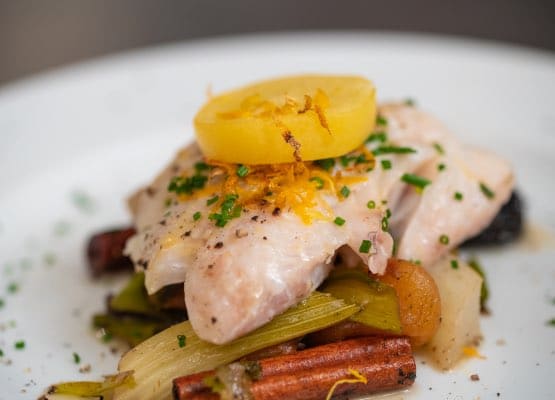 Trois plats aux subtils mélanges de saveurs, entre terre et mer.