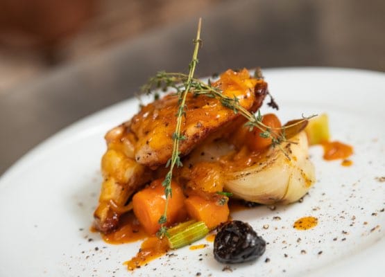 - Tajine de légumes - Dos de cabillaud au citron confit - Suprême de volaille, jus au pinot