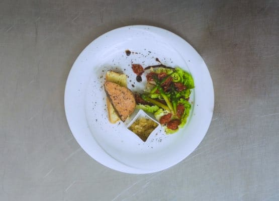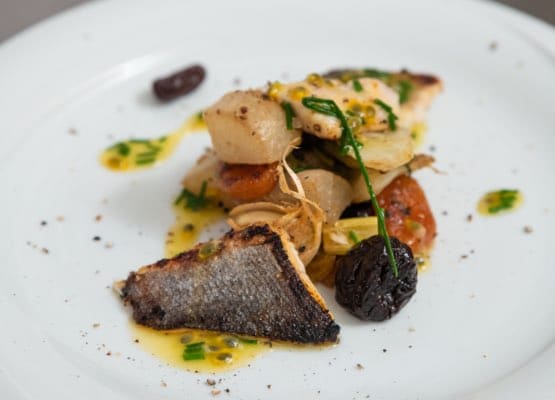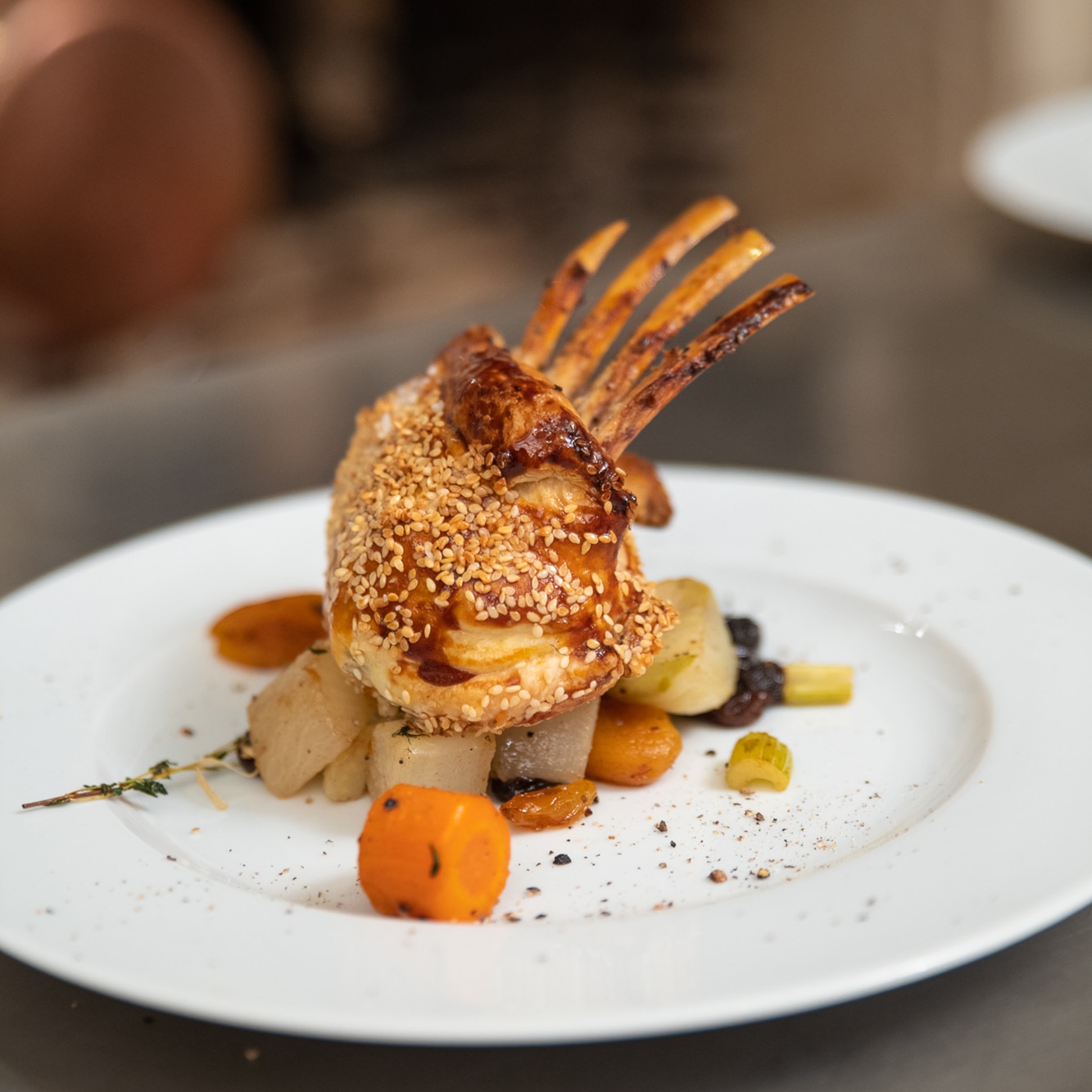 - Carré d’agneau en croûte de sésame et gros sel - Filet de bar au citron vert à l’unilatéral, vinaigrette passion