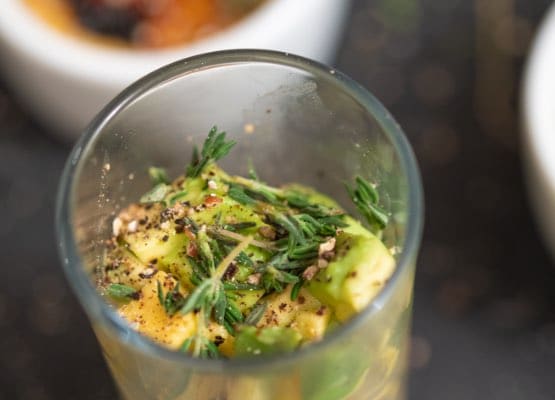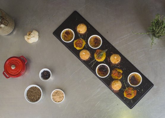 - Crème brûlée au foie gras - Mini-burger de canard, caramel d’épices - Verrine de crabe