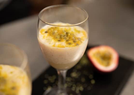 - Riz au lait, fruits de la passion et gelée de citron vert
